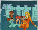 This is a rare inside shot of the Thundertank. Tygra, Cheetara and the kittens have been flipped out of their seats in the back of the Tank. You can see that the tank has been flipped upside down. A matching pencil is shown here. This is a cel that had no background painted on cardboard, the background was painted directly on to the cel itself which is kind of unusual.