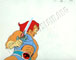 A really fun error cel, from Mechanical Plague. Notice that Lion-O's left side of his chest is painted in his flesh colour. His uniform is supposed to be on that section, and it should be painted blue. Every cel in that sequence is painted blue on his chest, except for this one cel. The cel painter made the error, and it wasn't caught, so the cel made it's way into production. A few screencaps have been provided here to show you what happened in the show. If you watch the scene, you're likely to miss the error!
