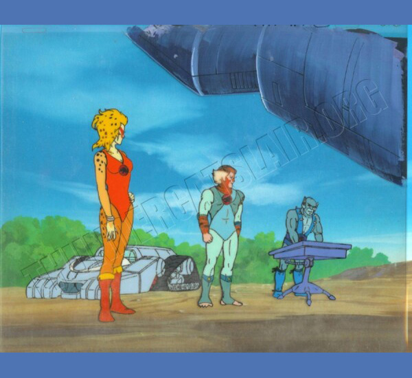 Really super cool cel here, one that is a lot of fun for a collector. There was an error in the way that Cheetara's uniform was painted, so an overlay cel of her correct uniform was painted, and added to the setup. As this was the second episode - Unholy Alliance, it's possible that the animator was using an earlier prototype model sheet of Cheetara, one that was likely scrapped before going to production. It's interesting because you can see that her belt is the same as the one she wears in Exodus. The style of her "bellybutton open" shirt is the same as Lion-Os. We may never know what the real cause of the error was, but this is one of the neat things about collecting production art, you can uncover errors that were made by the production staff... This is one of my favourite parts of collecting, finding cels like these.