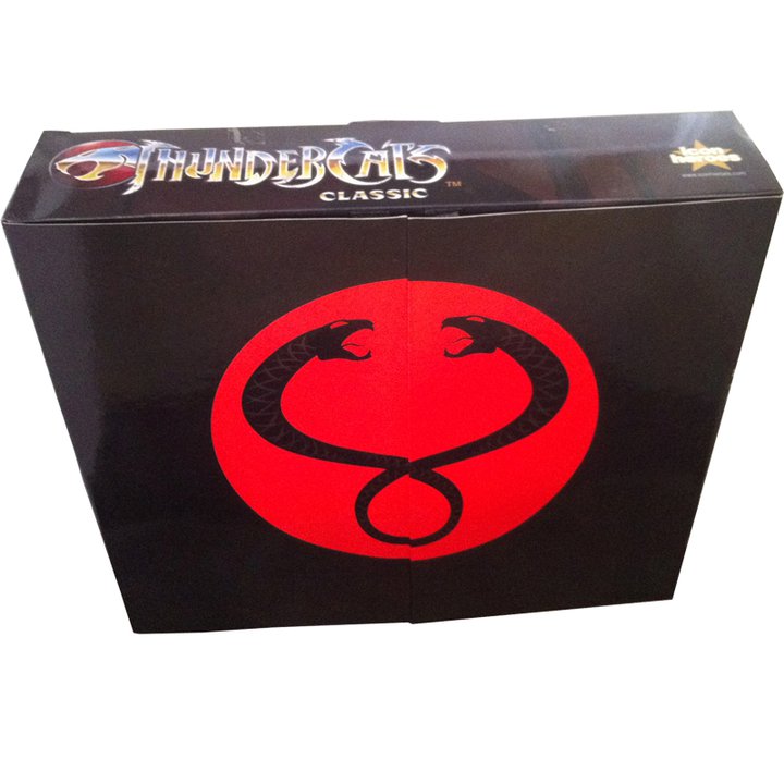 Mumm-Ra was packaged in a black box with his double serpent emblem and used a gatefold to incorporate his sarcophagus room as a diorama display.