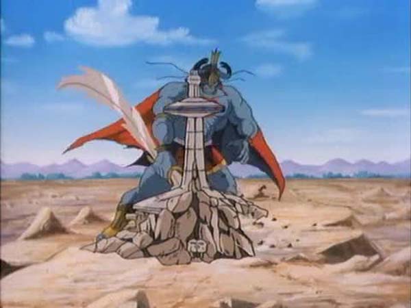 Filling the audience with a sense of déjà vu, the episode kicks off with Mumm-Ra at the receiving end of the Ancient Spirits of Evil’s wrath. Exasperated by the mummy’s constant failures and the loss of his allies the Mutants and the Lunataks (see “Notes of Interest” below), the sentient statues grant Mumm-Ra just one day to rid Third Earth of the ThunderCats. To prove their point, they banish Mumm-Ra’s beloved pet Ma-Mutt before transforming Mumm-Ra into his most powerful form yet, destroying his pyramid in the process.