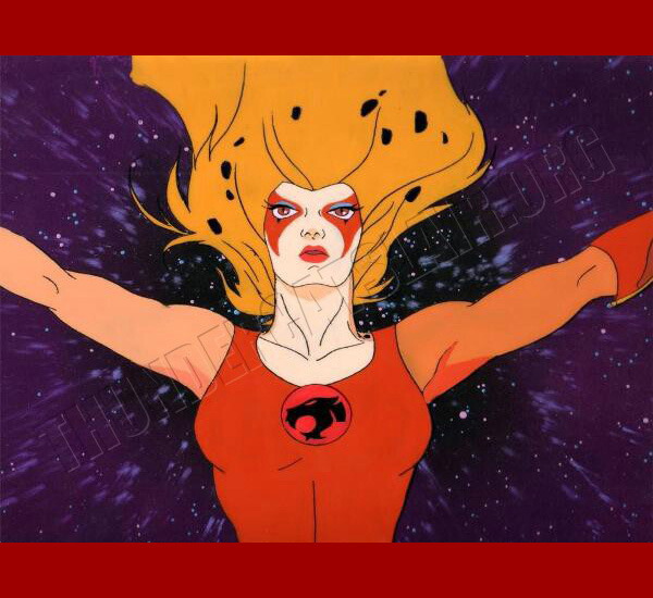 Description: From episode 099 – The Telepathy Beam. A brilliant cel of Cheetara with a spacey background behind her. |
