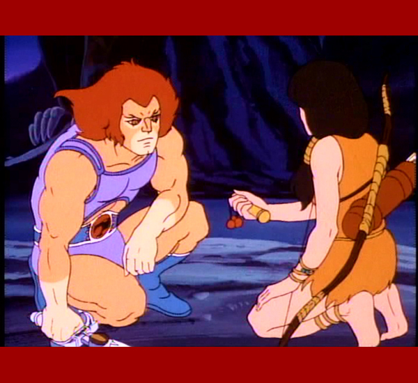 One of the impressive aspects of the art in the show is the anatomic correctness in which characters are drawn when moving or sitting naturally. Pay attention to Lion-O’s arm casually resting on his thigh, and Willa’s feet tucked under her as she shows Lion-O the bolo whip that Tygra left behind. Details like the way Lion-O’s boot is creased from the way he is sitting. I was always impressed with the talent of the artists on the show.