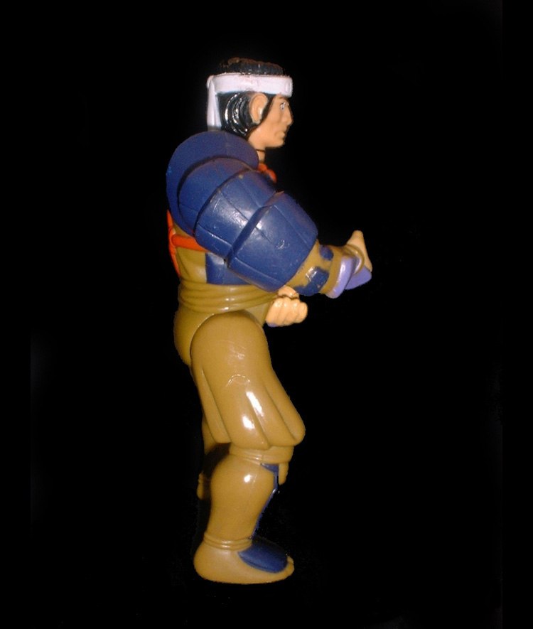 Twisting action can sometimes be found broken on loose figures. The helmet can also be damaged as it has detailed pieces that can break off.