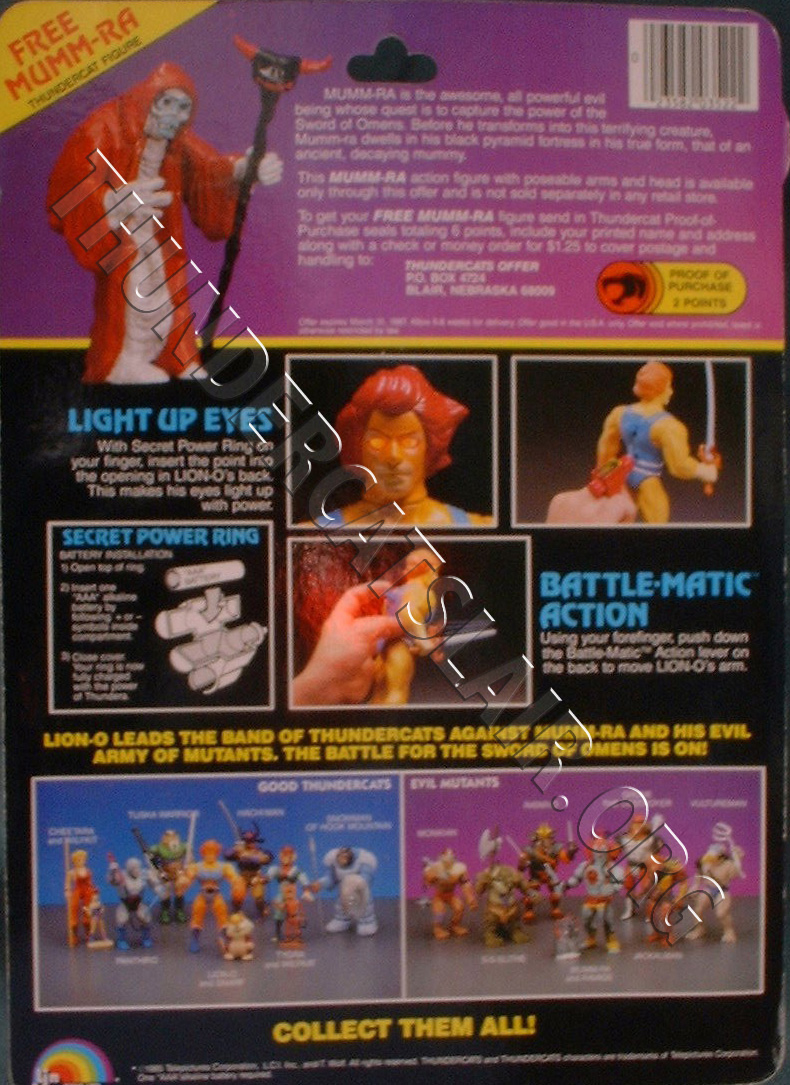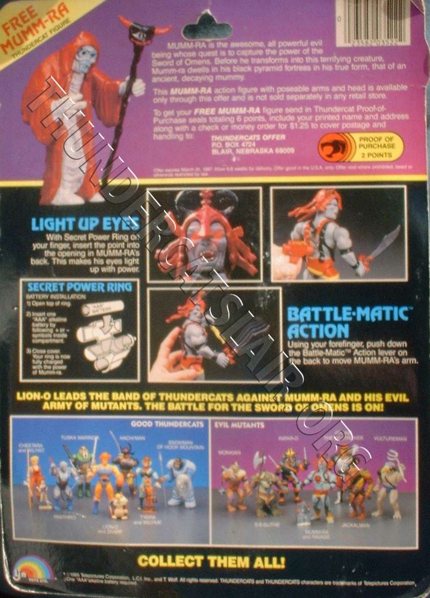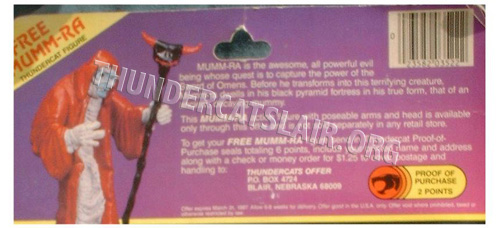 Image above shows the top of the card back, giving details on how to obtain your free Mumm-ra figure