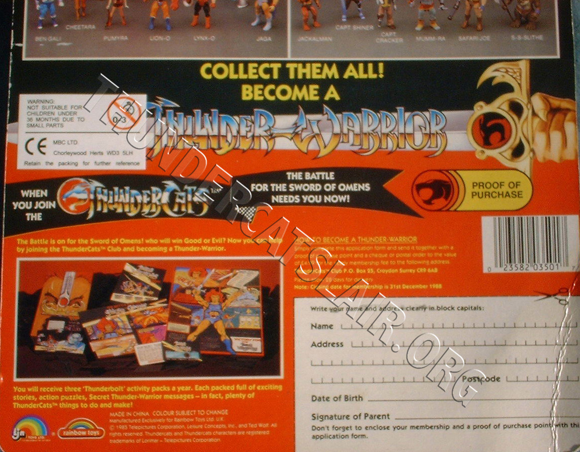 | Thunder Warrior offer (from bottom of 22-back UK Lion-o card)