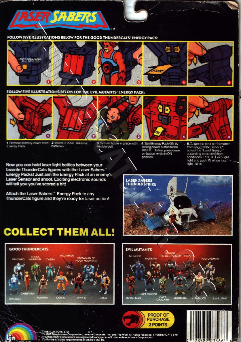 With the Thundercats toys, there were 7 different card back categories throughout the entire line. They were Series 1 (8-back), Series 2 (14-back), Series 3 (22-back), Companions (7-back), Berserkers (4-back), Ram-Pagers (25-back) Laser Sabers (22-back) and Two-Packs (2-back)