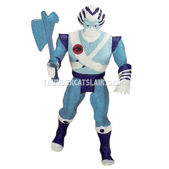 The 1987 (series 3) mini catalogue and all 22-back cards contain a group picture of all the regular good Thundercat figures together. However all the series 3 figures apart from Captain Cracker and Jaga have different accessories to those actually released with the figures. In this instance, Bengali is pictured holding a Hammer which is more mallet like and smaller than the one released. This Hammer actually suits the figure better. As collectors know, the Hammer that came with Bengali is quite big and can hinder Bengali's battle matic action feature as the Hammer hits his face. Looking at the prototype Hammer, it seems less likely this would be a problem. It is thought that this was a very early prototype piece to photograph with the figure. It was later changed to the larger Hammer with the face on the front. Strangely (for LJN) the colour remained the same (blue). Like many other weapons that were originally shown, this Hammer was never released with the Bengali figure.