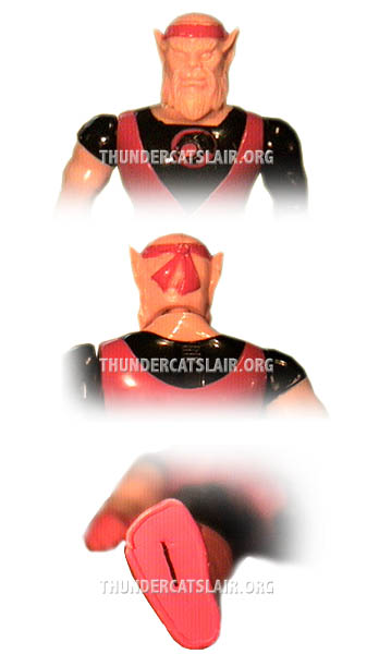 This figure is a pre-production LJN Lynx-o figure from the collection of Andrew McCabe. He gave me all his files to his Thundercats site last year (2005) including all his images. I thought it would be cool to put this piece up here.This Lynx-o figure was very near production as the only difference to the final figure is that his head has not yet been painted (apart from his head band) Andrew also comments that the head didn't seem to fit on the neck properly. There is also a number '1' on one of his feet (see image) Not sure what this means or why it's there.