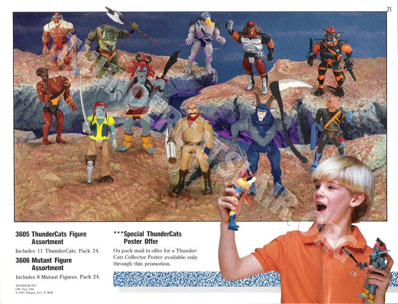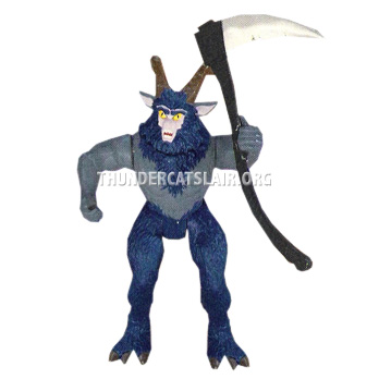 The 1987 (series 3) LJN mini catalogues and 22-back card backs contain a group picture of all the regular Evil Mutant figures together. However all the series 3 figures apart from Captain Cracker and Jaga have different coloured accessories to those actually released with the figures. In this instance Mongor is pictured holding a Scythe with a black handle. The Scythe that was released with Mongor had a grey handle. LJN was well known back then for changing the colours of accessories from the prototypes shown. The version of Mongor's Scythe released looks more realistic than if had been released with the black handle. It is thought that this was a very early prototype piece to photograph with the figure. As stated above, the colour of the handle was changed to grey. Like many other weapons that were originally shown in prototype pictures, this black handled Scythe was never released with the Mongor figureWe are including it here, due to the fact that it was pictured in what looks like prototype pictures. Whether it is a prototype or not is a matter of opinion.