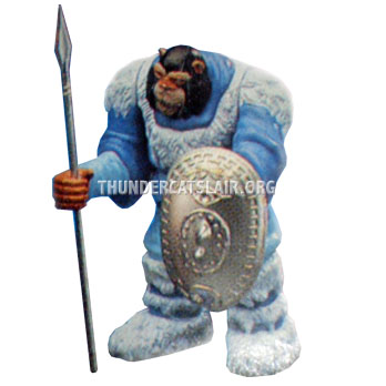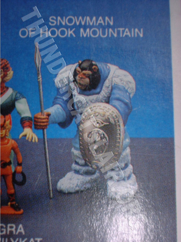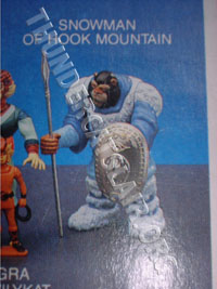 On the series 2 (14-back) cardbacks, the Snowman figure is pictured with a totally different shield and spear. The shield looks more detailed than the shield that was released. This shield seems to have a kind of pattern on it. The spear looks to be more pointed than the one that was released. I believe the shield and spear was actually released with a figure from the LJN Advanced Dungeons and Dragons toyline. However these variations are included here as they were never actually produced for the Thundercats toyline itself.